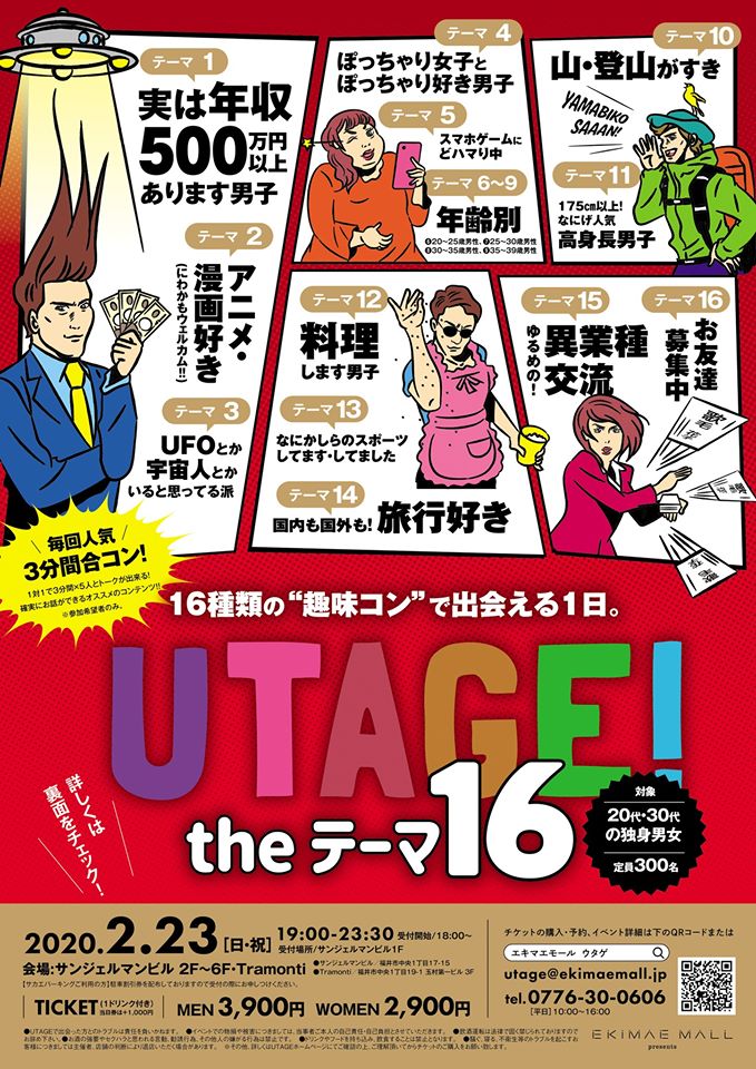 装飾「16のテーマ別合コン」↓